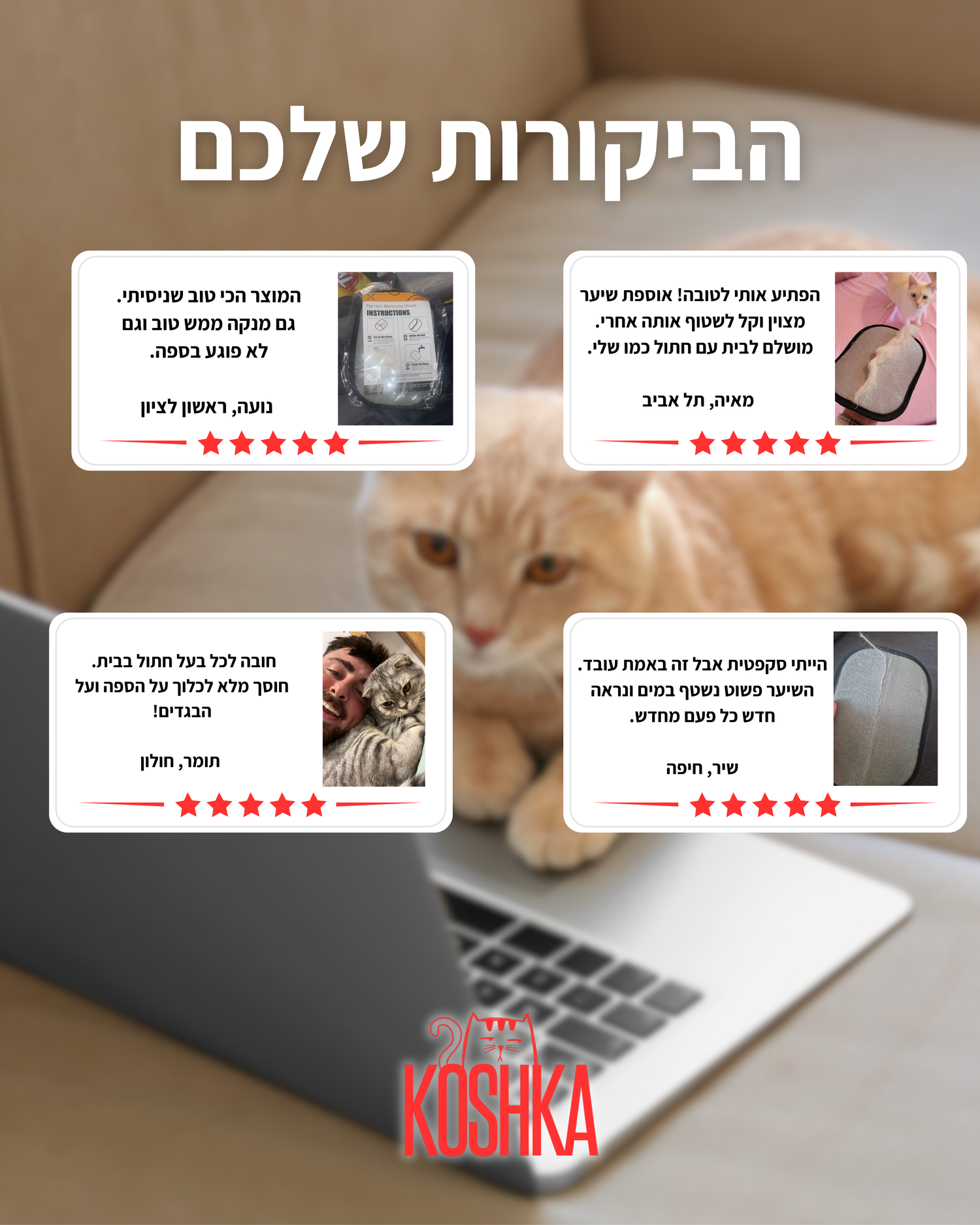 הזמן עכשיו את כפפת KOSHKA שלך ותגלה כמה פשוט לחיות עם בעל חיים בלי שיער בכל מקום!